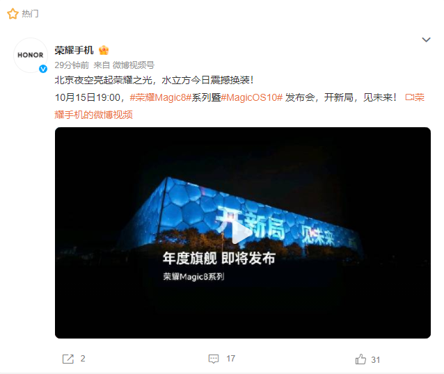 10月9日,荣耀官方正式宣布,主题为“开新局・见未来”的荣耀 Magic8 系列暨 Magic OS10 发布会将于10 月15日正式举行。